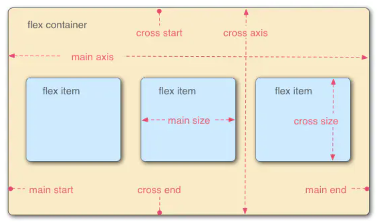 容器中默认存在两条轴,主轴和交叉轴,呈 90 度关系。项目默认沿主轴排列,通过flex-direction来决定主轴的方向