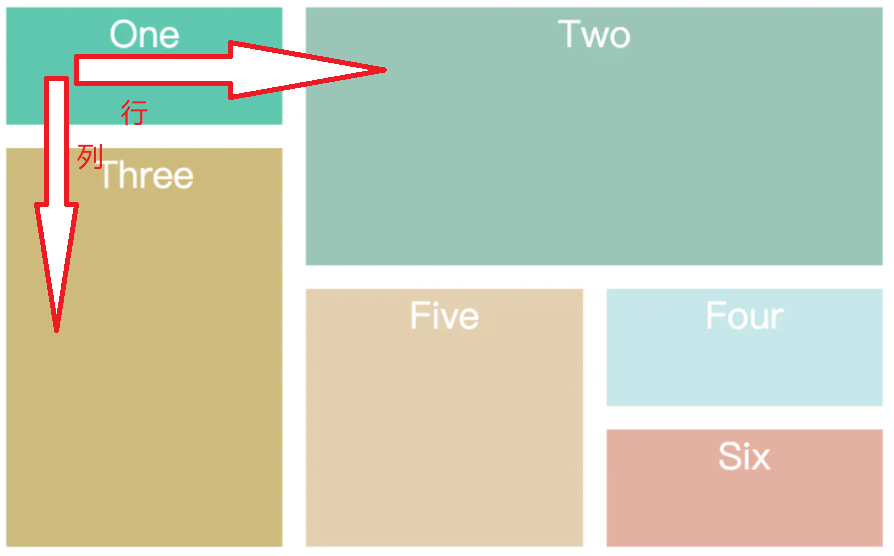 顺序就是由grid-auto-flow决定,默认为行,代表"先行后列",即先填满第一行,再开始放入第二行