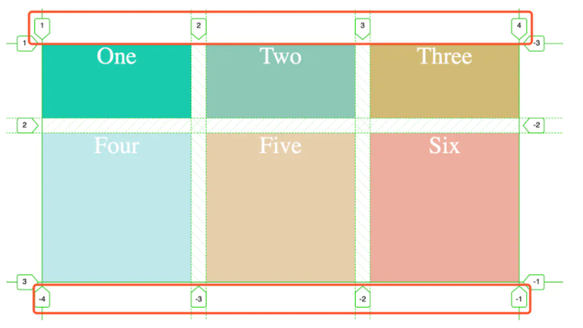 指定网格项目所在的四个边框,分别定位在哪根网格线,从而指定项目的位置