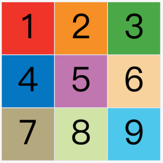 上面代码先划分出 9 个单元格,然后将其定名为a到i的九个区域,分别对应这九个单元格。