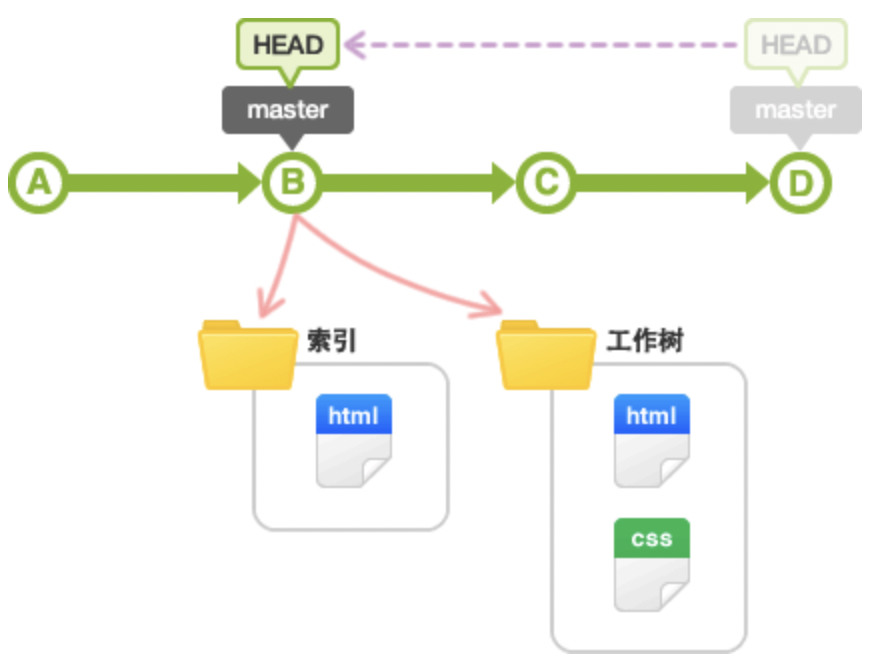 当没有指定ID的时候,默认使用HEAD,如果指定ID,那么就是基于指向ID去变动暂存区或工作区的内容