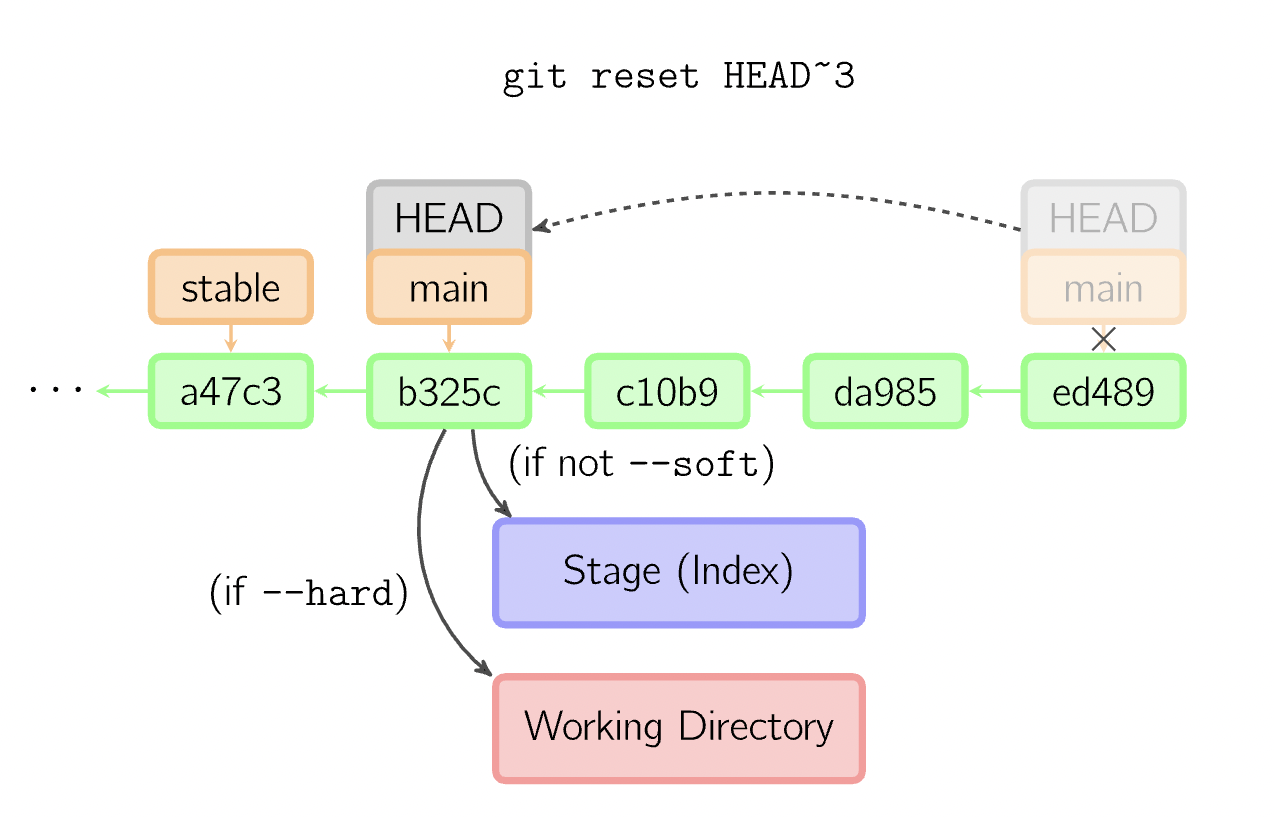 --soft:如果使用 --soft 参数,那么暂存区和工作区都不会变化