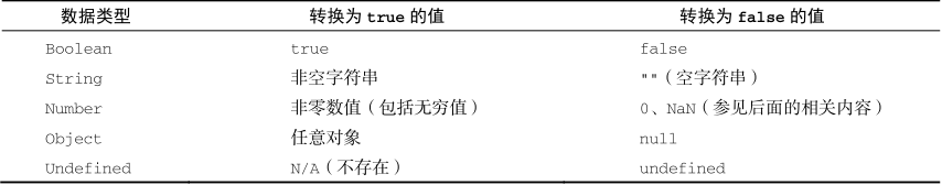 可以将任意类型的值转为布尔值,转换规则如下: