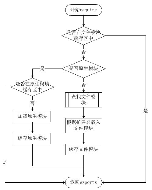 从上图可以看见,文件模块存在缓存区,寻找模块路径的时候都会优先从缓存中加载已经存在的模块