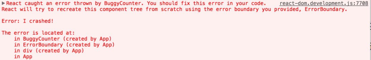 除了错误信息和 JavaScript 栈外,React 16 还提供了组件栈追踪。现在你可以准确地查看发生在组件树内的错误信息: