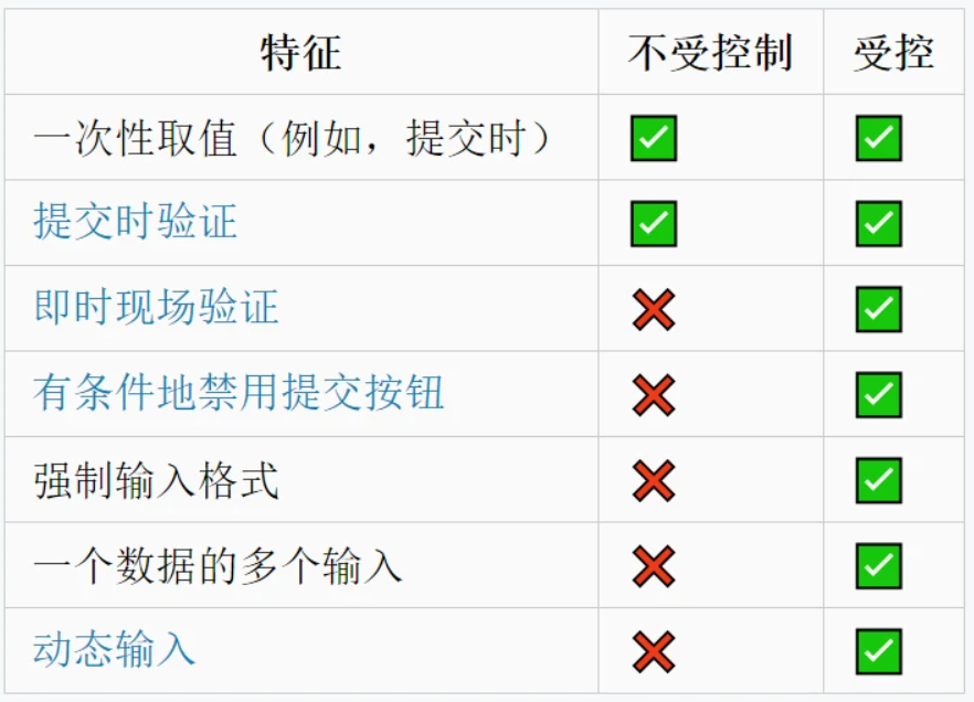 因此,受控组件我们一般需要初始状态和一个状态更新事件函数