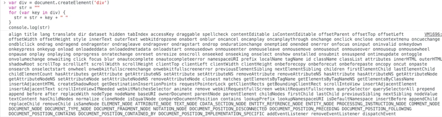 真实的DOM节点,哪怕一个最简单的div也包含着很多属性,可以打印出来直观感受一下: