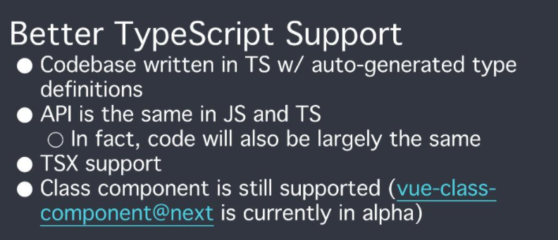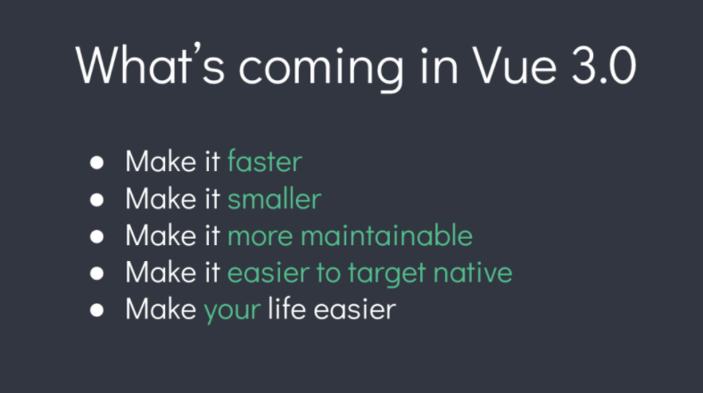 在我们更新(和重写)Vue 的主要版本时,主要考虑两点因素:首先是新的 JavaScript 语言特性在主流浏览器中的受支持水平;其次是当前代码库中随时间推移而逐渐暴露出来的一些设计和架构问题」