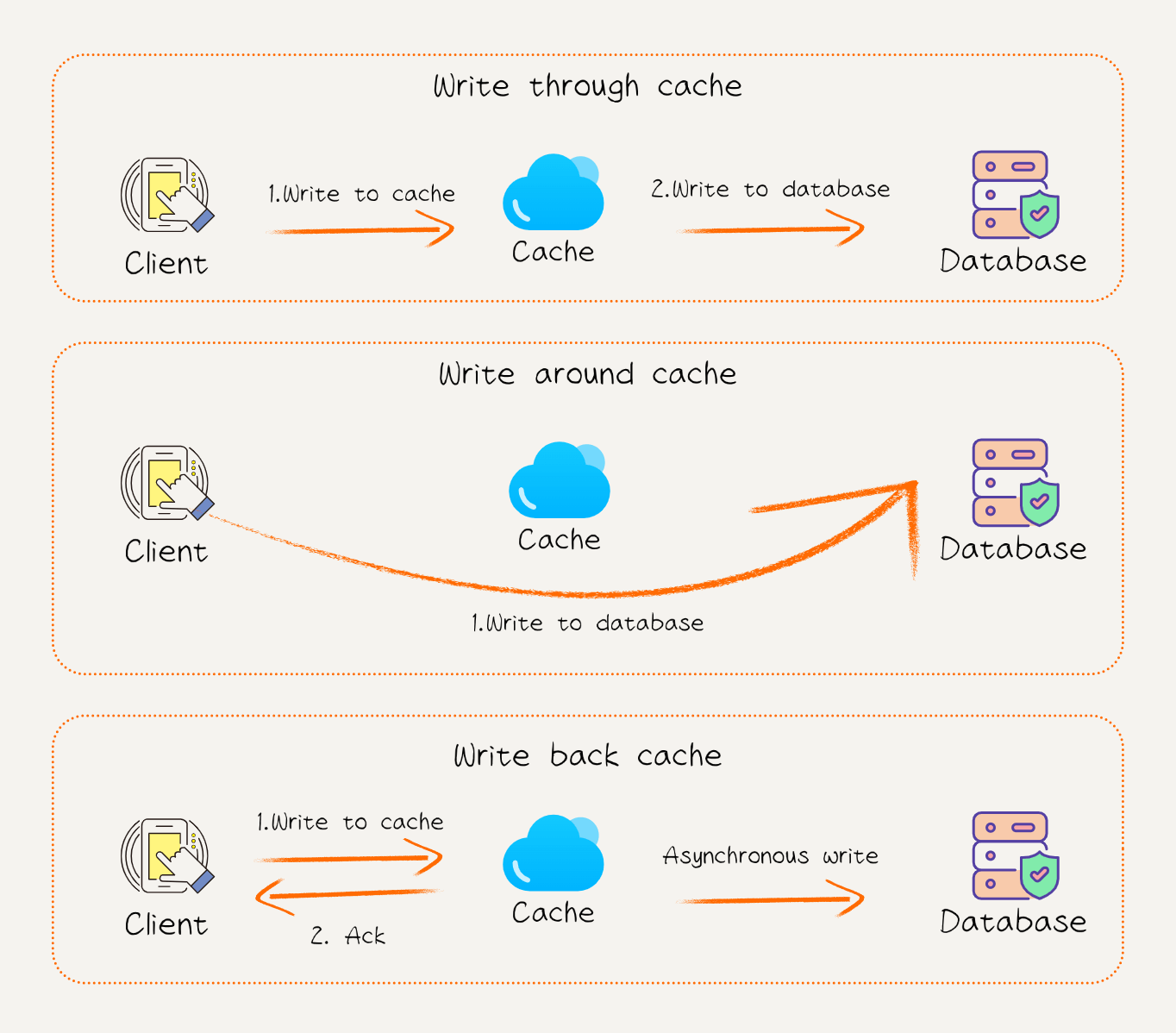 - 写入先更新缓存,稍后批量同步到底层存储。