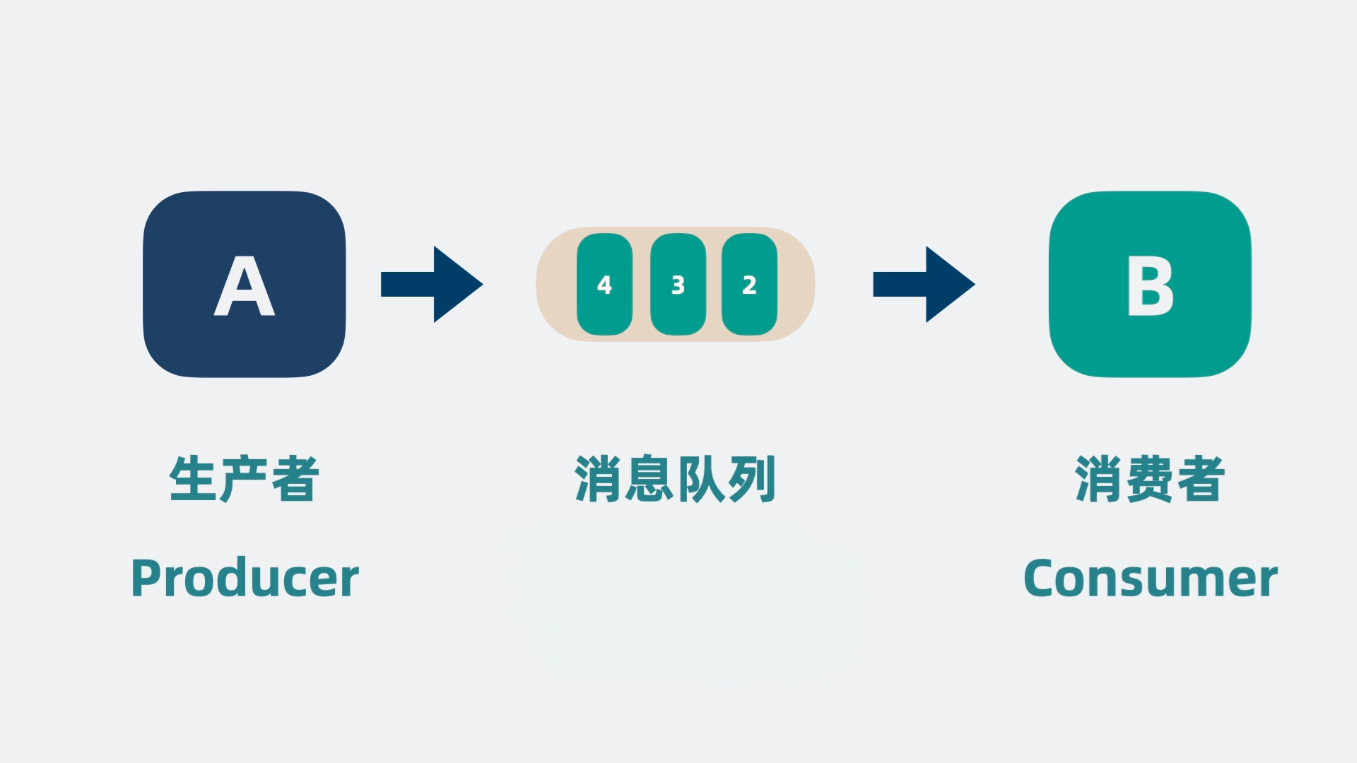 像 A 服务这样负责发数据到消息队列的角色,就是生产者,像 B 服务这样处理消息的角色,就是消费者。