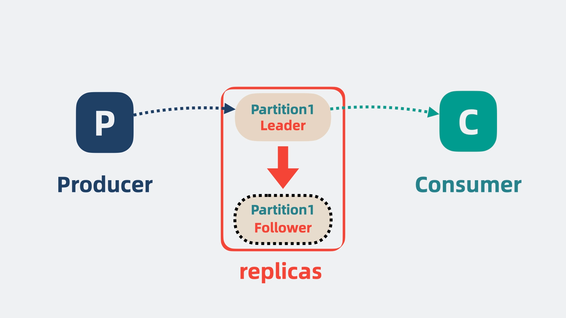 所以需要给 partition 多加几个副本,也就是 replicas,将它们分为 Leader 和 Follower。Leader 负责应付生产者和消费者的读写请求,而 Follower 只管同步 Leader 的消息。