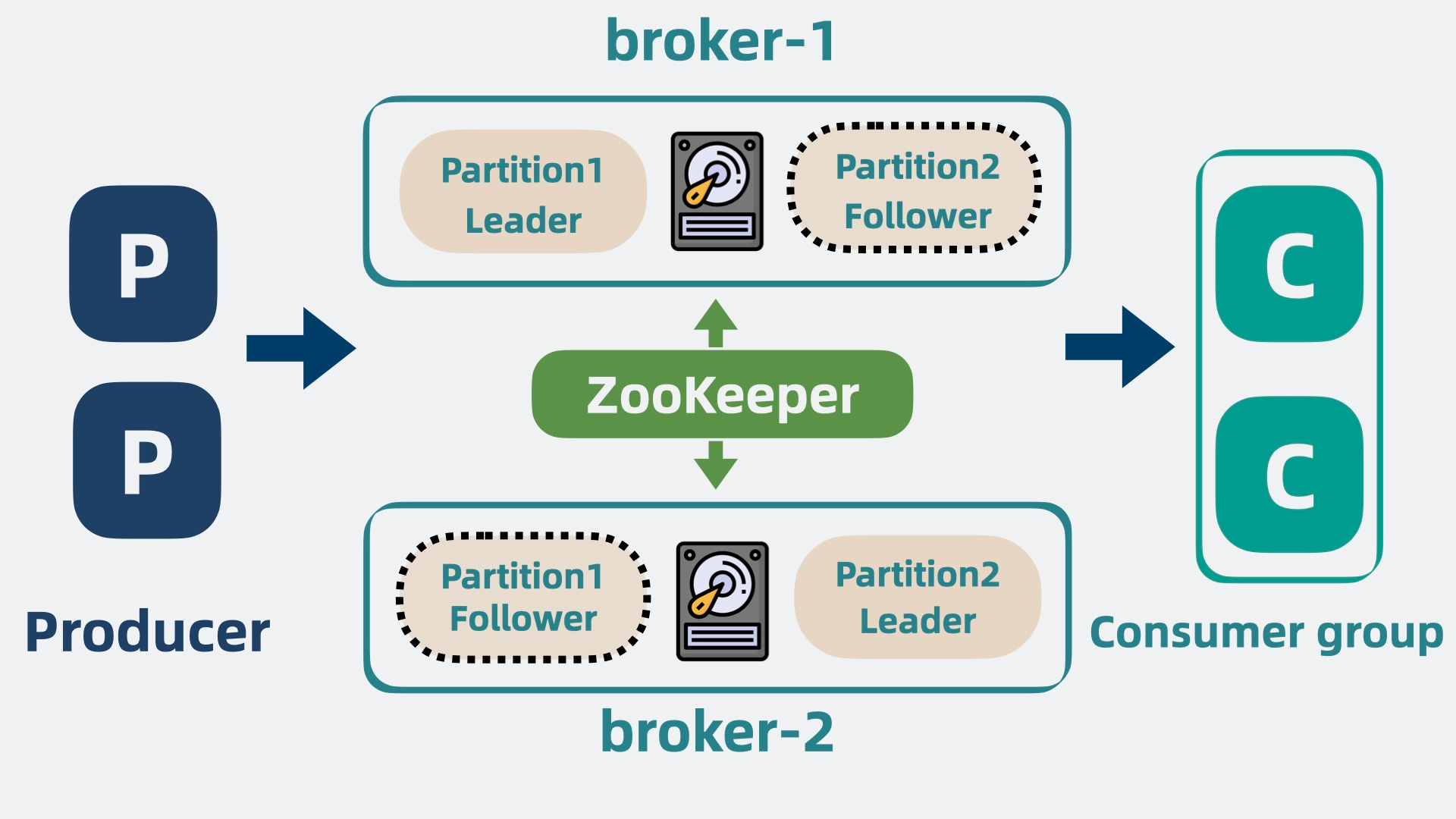 ZooKeeper 定期与 Broker 和消费者通信,确保集群的一致性。当某个 Broker 挂掉时,ZooKeeper 会通知集群重新选举 Leader 或重新分配 Partition。