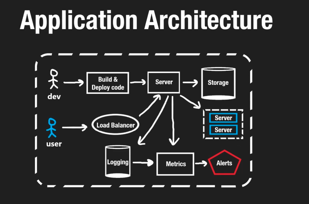 从开发者的视角出发,可以更容易理解应用程序架构。开发者编写代码后将其部署到一个服务器上。这里我们暂且定义服务器为处理来自其他计算机请求的计算机。服务器需要持久性存储来保存应用程序的数据。尽管服务器可能内置存储设备,但其存储容量通常有限,因此服务器会通过网络与外部存储系统(例如数据库或云存储)进行通信。