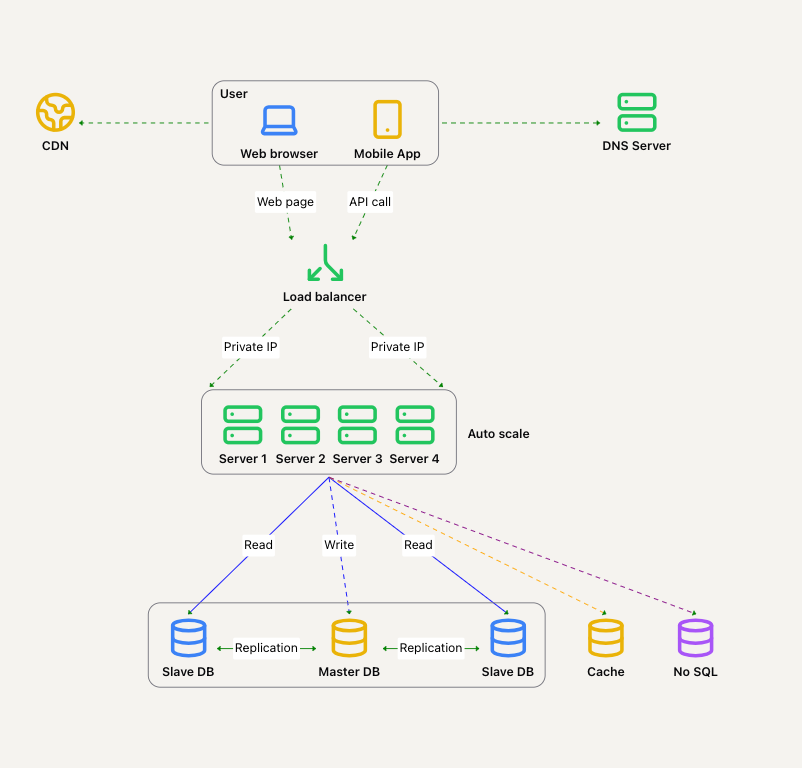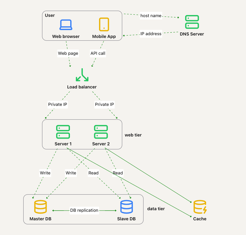 随着用户量的增加,将所有内容存储在单台服务器上已经不够用了。我们可以将数据库迁移到另一台服务器,这样它就可以独立于 Web 层进行扩展: