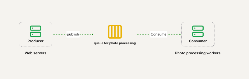 - Web 服务器将“照片处理任务”发布到消息队列。