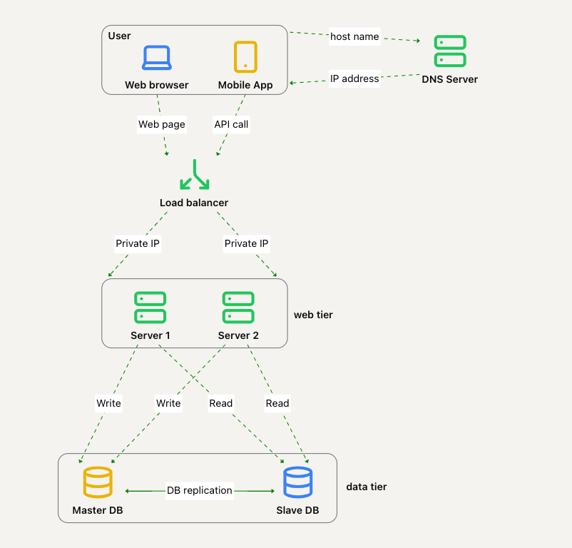 在这篇文章里,我们将构建一个支持少量用户的系统,并逐步扩展以支持百万级用户。