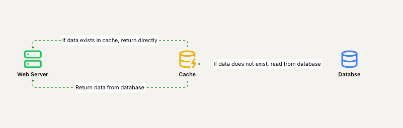 上面的示例是一个读通过缓存的缓存(read-through cache)——服务器检查数据是否在缓存中。如果不在,则从数据库获取数据。
