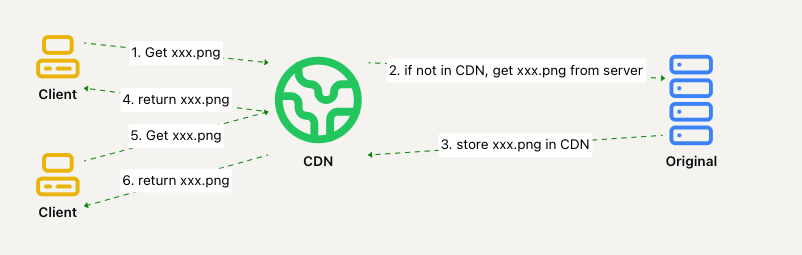 每当用户请求静态内容时,离用户最近的 CDN 服务器将为其提供内容: